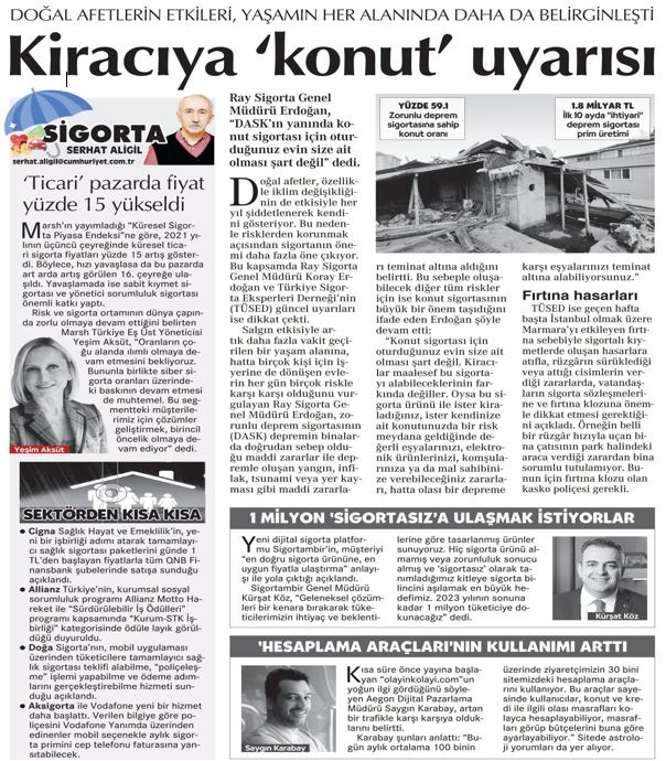 Cumhuriyet Gazetesinde Yayımlanan "Doğal Afetlerin Etkileri, Yaşamın Her Alanında Daha Da Belirginleşti" Başlıklı Haberimiz