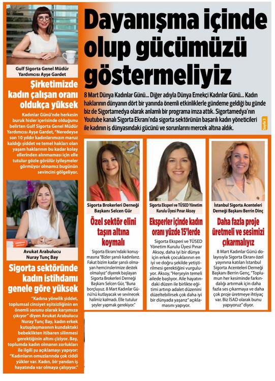 Gazete Sigorta'da yayımlanan 8 Mart Dünya Kadınlar günü ile ilgili Haber