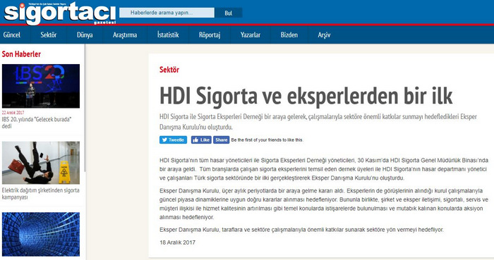 Sigortacı Gazetesi; HDI Sigorta ve SED den Bir İlk Eksper Danışma Kurulu