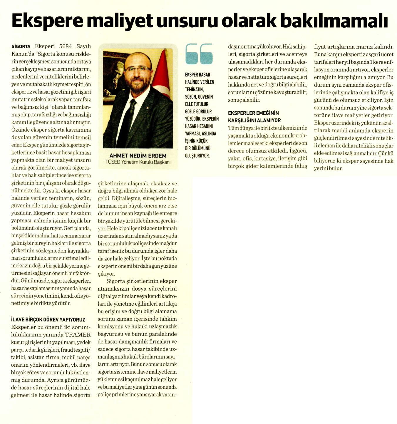 TOBB SEİK ve Dernek Başkanımız Sayın Ahmet Nedim ERDEM ‘in Dünya Gazetesi Sigorta Sektör Eki’ nde Yayınlanan Haberimiz