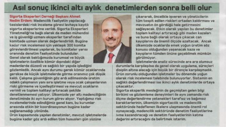 Dernek Başkanımız Sayın Ahmet Nedim ERDEM'in Şemsiye Dergisinde Yayımlanan Maden Sigortaları ile ilgili Yazısı