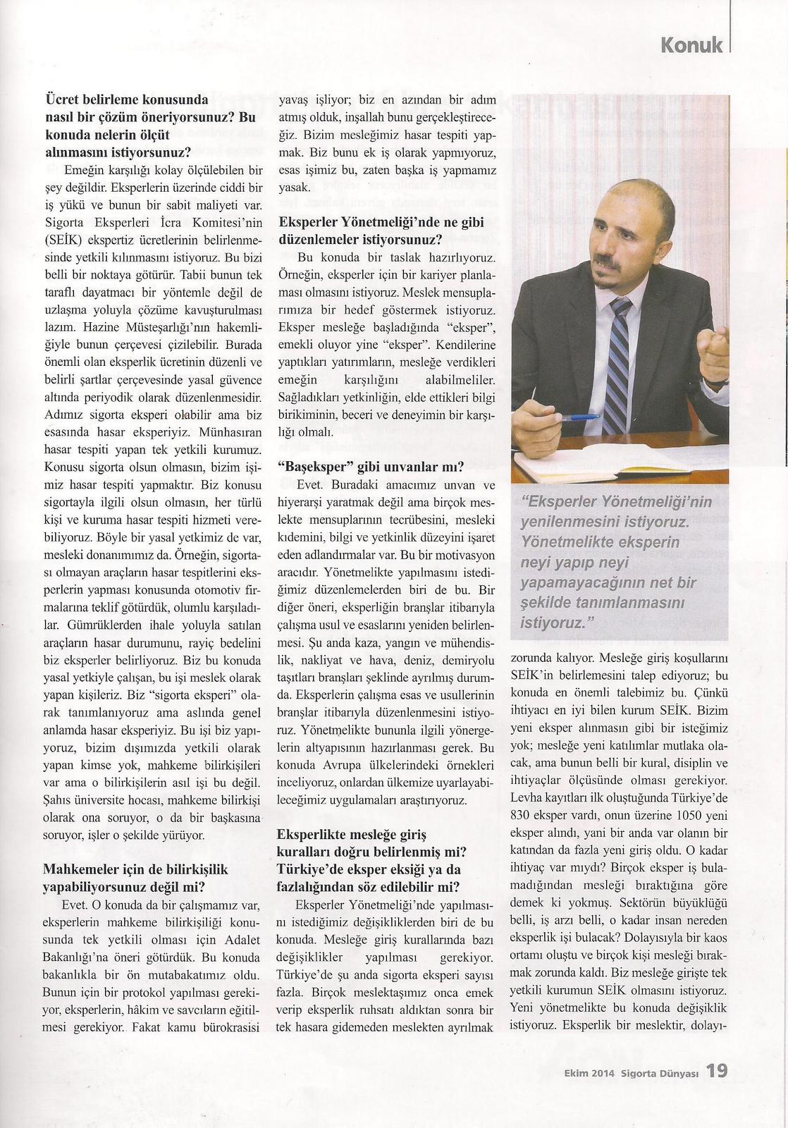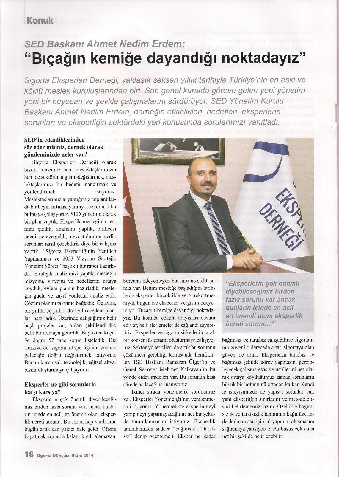 Dernek Başkanımız Sayın Ahmet Nedim ERDEM’in Sigorta Dünyası Dergisinin Ekim Sayısında Yayınlanan Röportajı