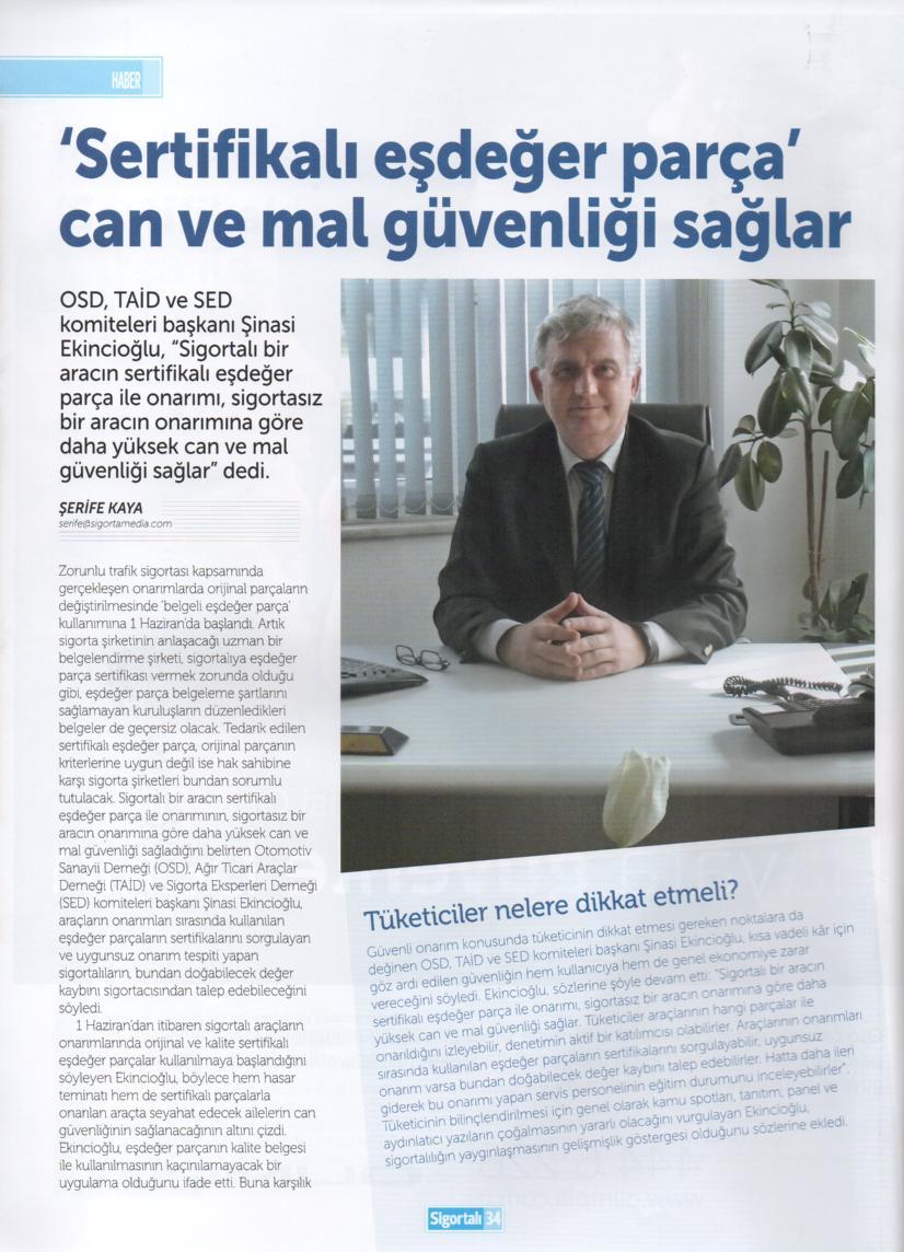 Yönetim Kurulu Üyemiz Sayın Şinasi EKİNCİOĞLU'nun Hayatımız Sigortalı Dergisinin Haziran Sayısında Yayınlanan Röportajı