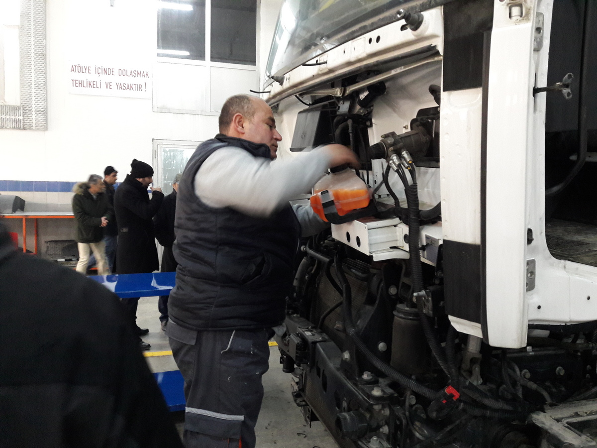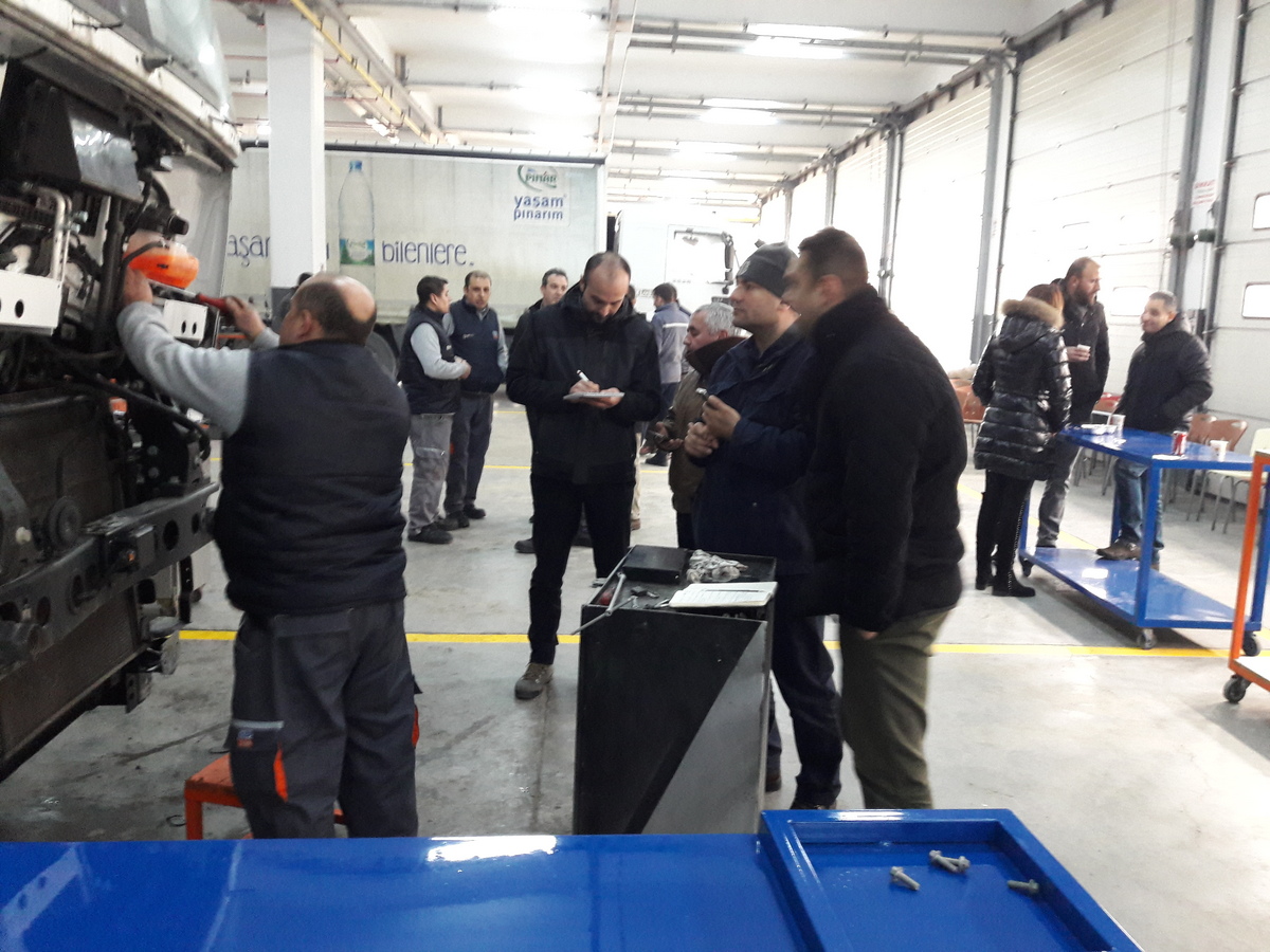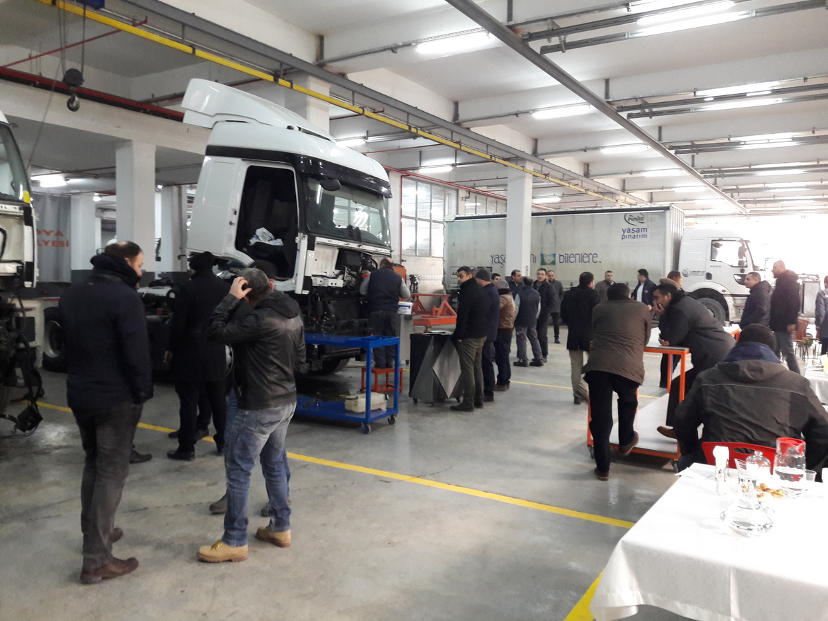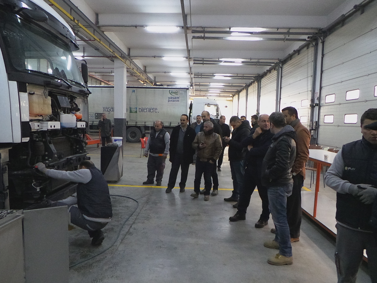 Ford Otomotiv Sanayi A.Ş. Ford Trucks Satış Sonrası Servis Mühendisi Sn. H. Ersin Kütük ve SED Standart Belirleme Komitesi Kontrolünde gerçekleştirilen çalışmada farklı Ford Trucks Bayilerinin Servis Müdürleri ve Atölye Şefleri bizzat izleyici olarak yer almışlardır.