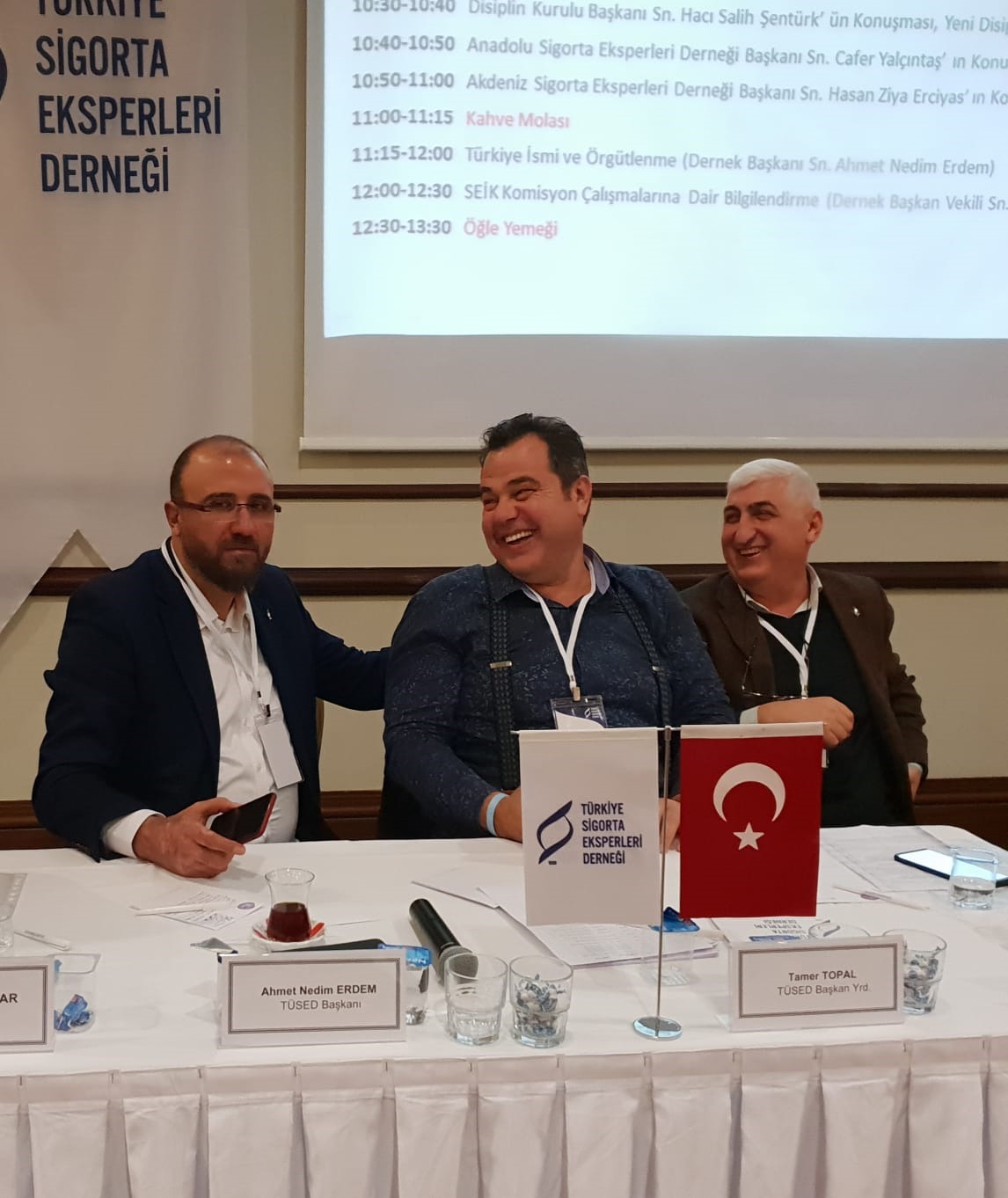 Sırası ile SEDEV Başkanı, TÜSED ve SEİK Başkan Vekili Sn. Fikret Gülbahar, TÜSED Disiplin Kurulu Başkanı Sn. Hacı Salih Şentürk, Anadolu Sigorta Eksperleri Derneği Başkanı Sn. Cafer Yalçıntaş, Akdeniz Sigorta Eksperleri Derneği Başkanı Sn. Hasan Ziya Erciyas’ın konuşmaları ile devam eden toplantıda Dernek Başkanımız Sn. Ahmet Nedim Erdem Türkiye İsmi ve Örgütlenme sunumunu yapmış, TÜSED’ in Türkiye genelindeki 13 bölge ve 7 il temsilciliğinde mevcut örgütlü yapısı sayesinde her ildeki meslektaşımızın doğrudan Dernek yönetimi ile iletişime geçebildiği, yönetimin de yürütülmekte olan tüm çalışmalar hakkında tüm il ve bölge temsilciliklerini düzenli olarak bilgilendirerek doğru ve taze bilginin ülke geneline akışının sağlandığını ifade etmiştir. Dernek Başkan Vekilimiz Sn. Ulaş Erdoğan İse SEİK komisyon çalışmalarına dair bilgilendirmede bulunmuştur.