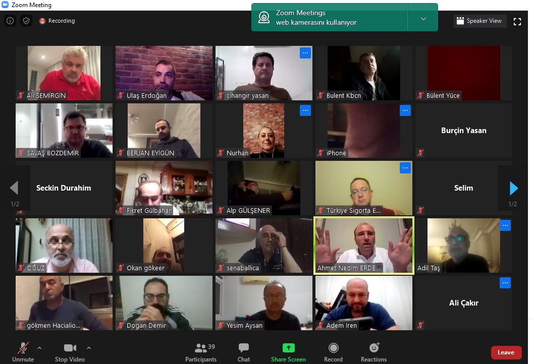 01.05.2020 tarihinde, 1 Mayıs Emek ve Dayanışma Günü' nünde Türkiye Sigorta Eksperleri Derneği Yönetim Kurulu, Bölge ve İl Temsilcilerimiz, SEİK ve Dernek Başkanımız Sayın Ahmet Nedim ERDEM ve SEİK Üyelerinin eksiksiz katılımı ile bir video konferans toplantısı gerçekleştirdik. Toplantıda mesleğimizin üzerine görüşerek Covid 19' un Mesleğimiz ve Türk Sigorta Sektörüne etkilerini değerlendirdik. Türkiye' nin dört bir yanında faaliyet gösteren Bölge ve İl temsilcilerimizin tamamını tek tek dinledik, salgının mesleğimiz üzerindeki etkileri hakkında talep ve geri bildirimler aldık, mesleğimizin yapısı itibarı ile zor zamanların mesleği olduğunu, gerek ülkemiz gerekse meslektaşlarımız ile birlikte omuz omuza bu zorluğun da üstesinden geleceğimizi değerlendirdik.