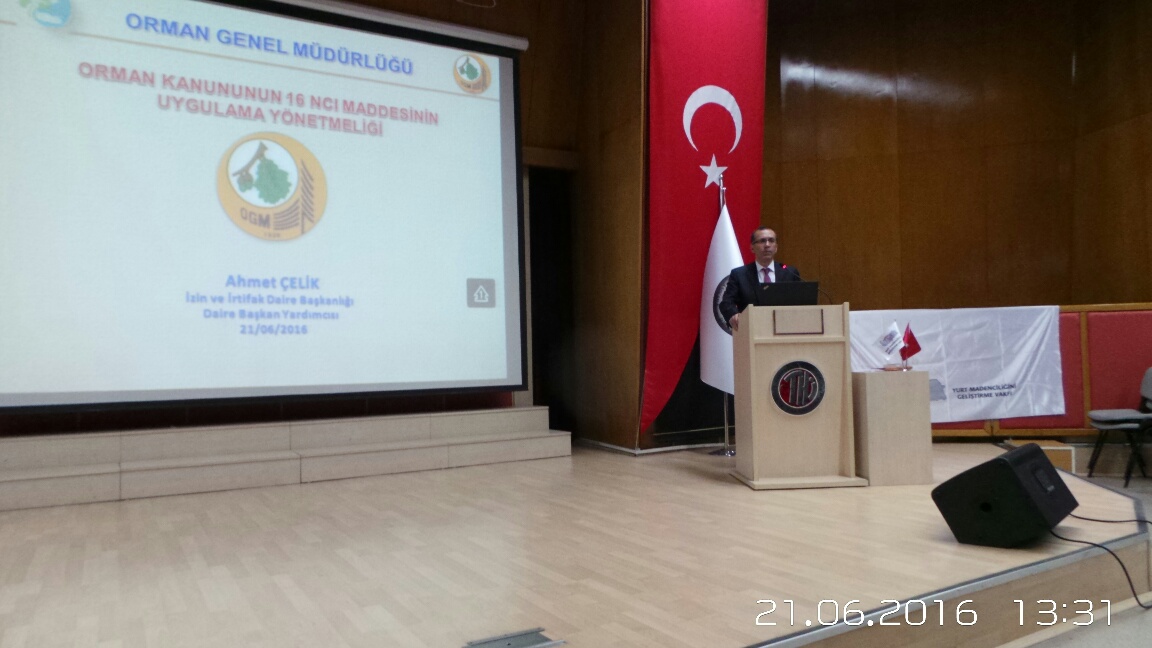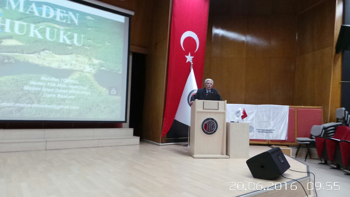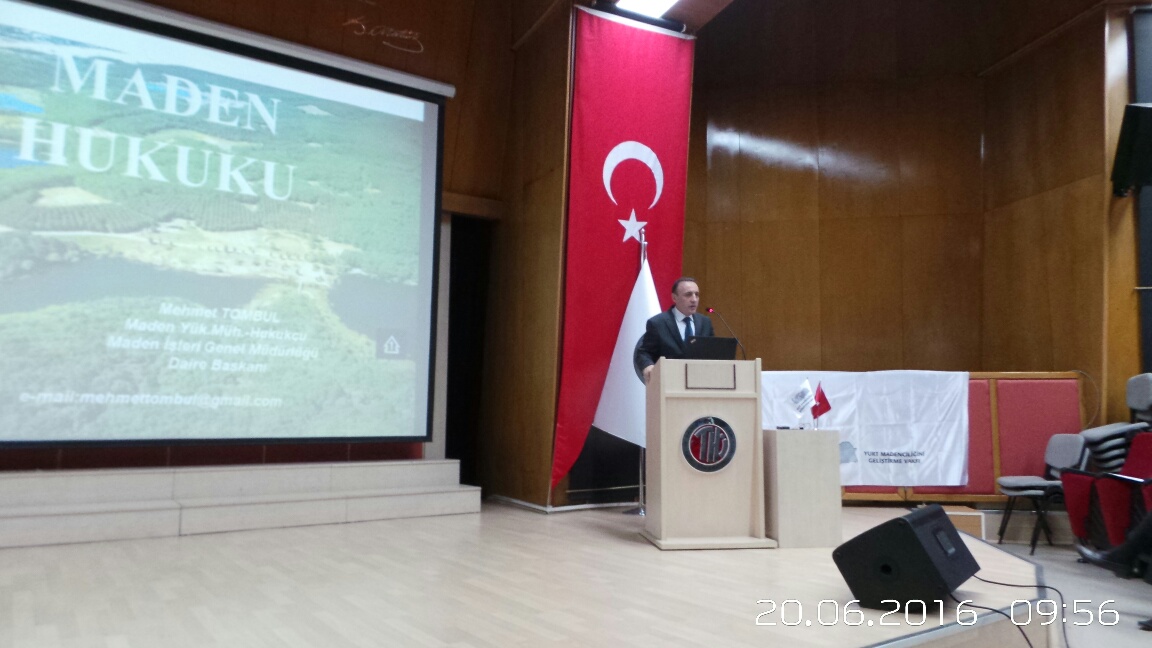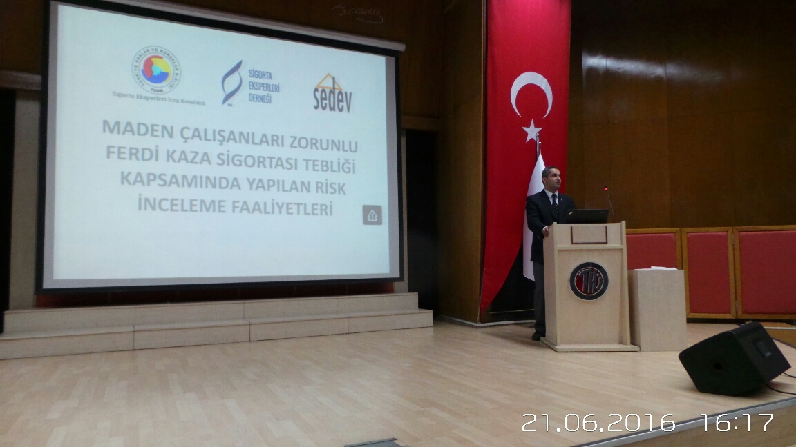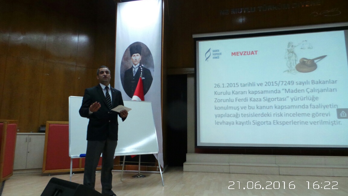 Yurt Madenciliğini Geliştirme Vakfı tarafından 20-21.06.2016 tarihlerinde T.K.İ. Genel Müdürülüğünde düzenlenen "Maden, Çevre ve Orman Mevzuatında Son Durum ve Uygulamalar" seminerine Dernek Yöneticilerimiz Sayın Ulaş Erdoğan ve Sayın Sedat Urkaya katılım göstererek MADEN ÇALIŞANLARI ZORUNLU FERDİ KAZA SİGORTASI TEBLİĞİ KAPSAMINDA YAPILAN RİSK İNCELEME FAALİYETLERİ ve SİGORTA EKSPERLİĞİ mesleği hakkında sunum yapmışlardır.