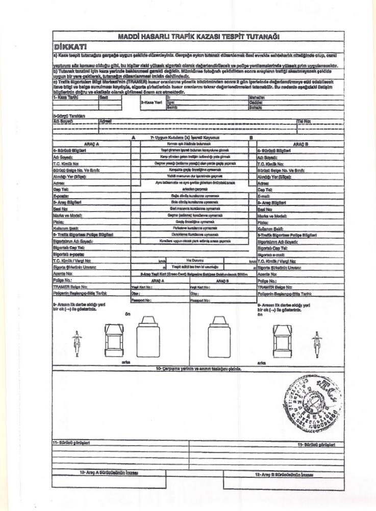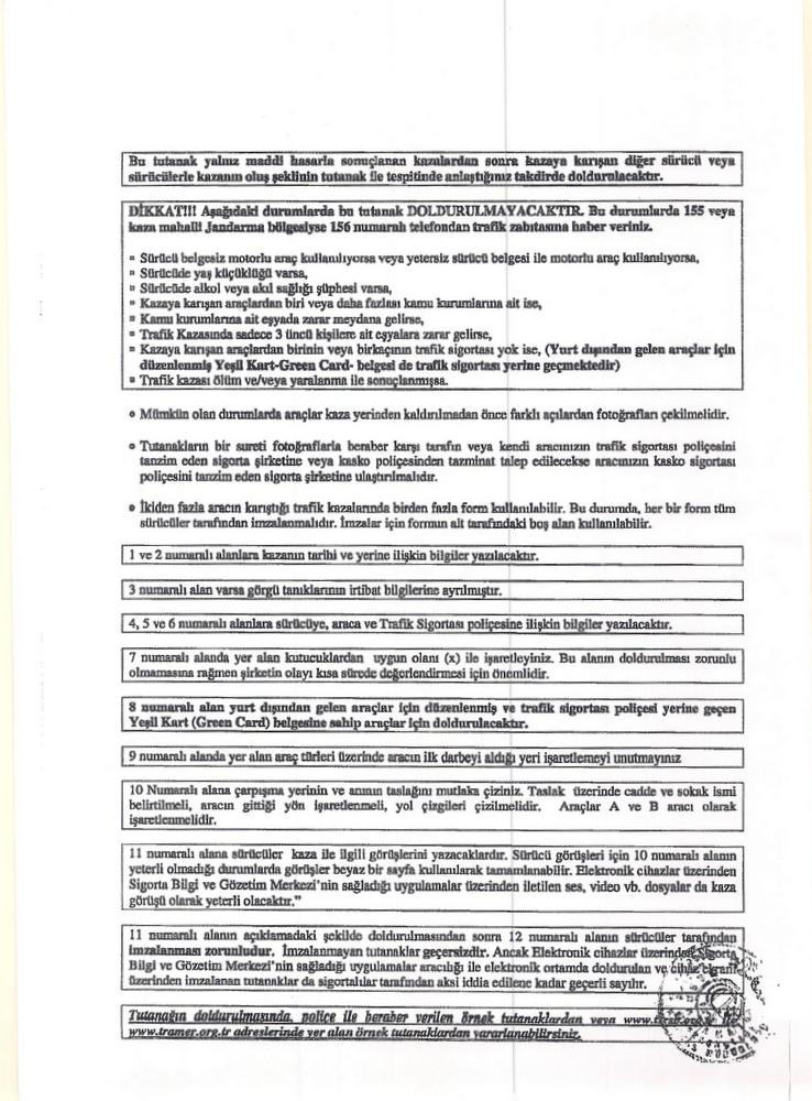 Kaza Tespit Tutanağı Açıklamalar için TIKLAYINIZ.